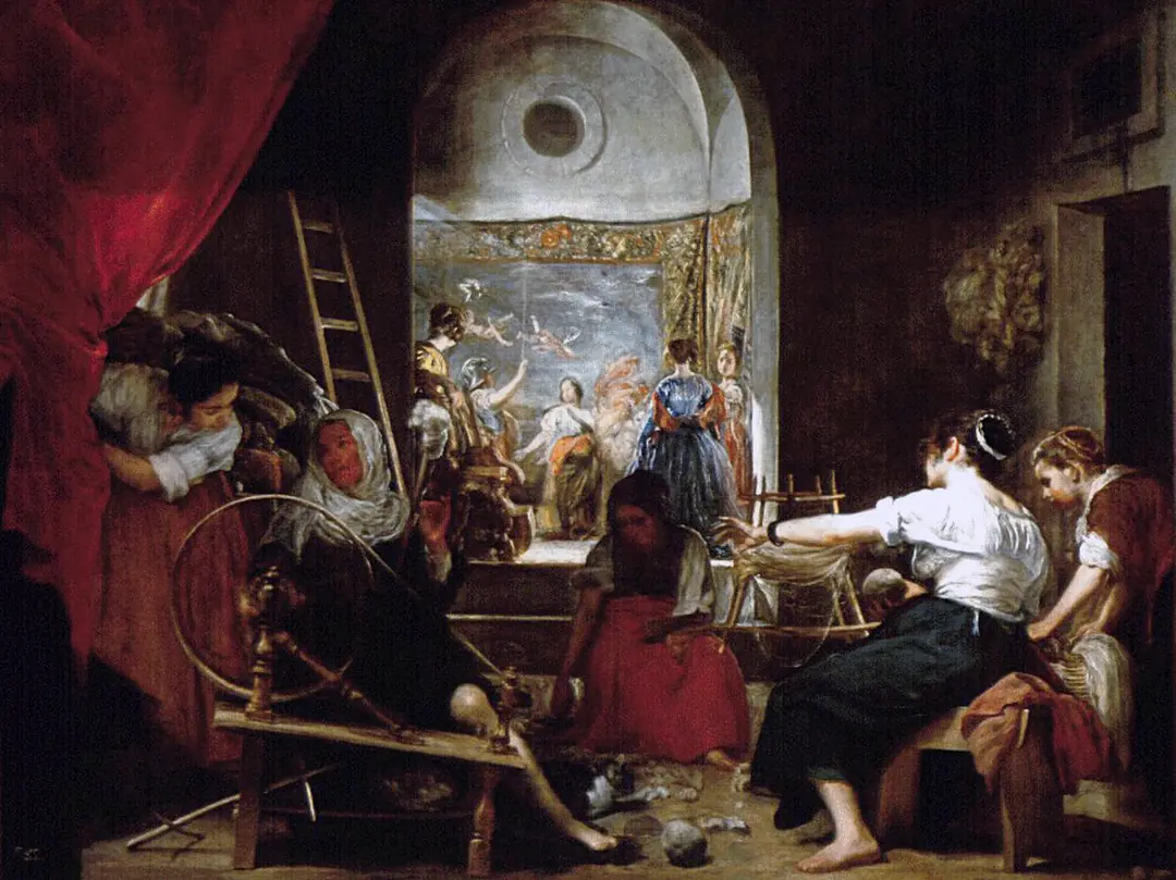 Velázquez bu eserinde, tanrıça Athena ile ölümlü dokumacı Arachne arasındaki kibir ve ustalık yarışını çok katmanlı bir yapıyla sunar. Ön planda sıradan bir dokuma atölyesini gösterirken, arka planda mitolojik asıl hikayeyi aydınlık bir sahne içinde gizleyerek izleyiciyi şaşırtır. Bu mekansal yanılsama, sanatçının perspektif ve ışık kullanımındaki üstün yeteneğini tartışmasız şekilde kanıtlar. Eser, Diego Velázquez tabloları arasında sanatın doğasını ve ilahi kibri sorgulayan en entelektüel çalışmalardan birini temsil eder.